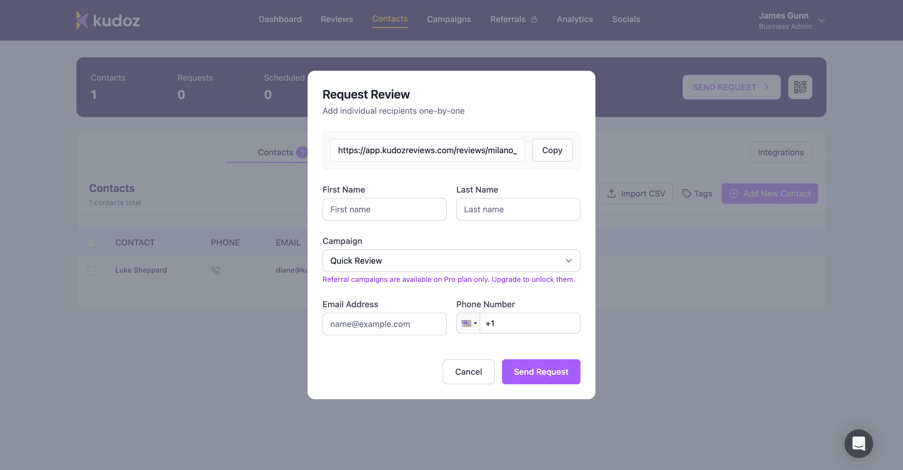 Send review requests by email or SMS.