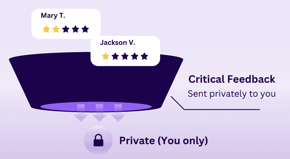 Filtering (4–5 stars → Google, 1–3 stars → private feedback)